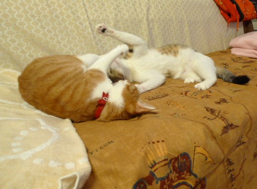 )を狙っているしゃこちゃんといさきちゃん、そういえば11月に動物病院へ年1回の注射をしに行ったんだよね