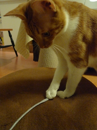 いさきちゃんは乾くとすぐにご機嫌を直して紐にちょいちょい