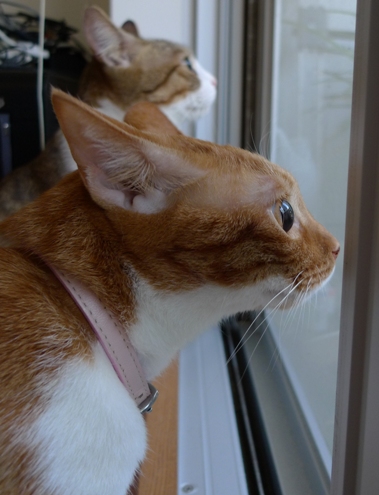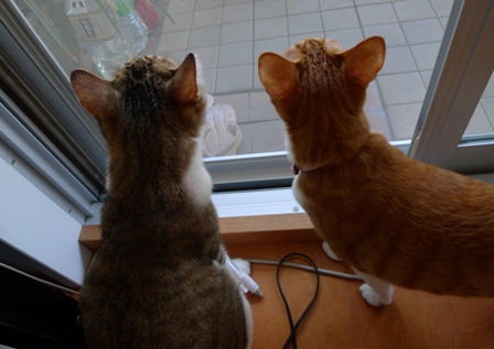 中の様子を心配そうに見ていました