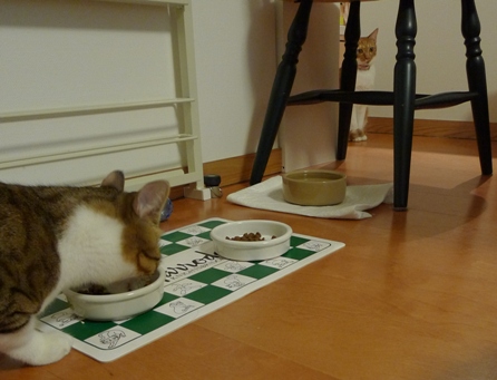 しゃこちゃんががふがふご飯を食べている向こうで