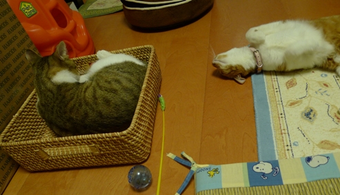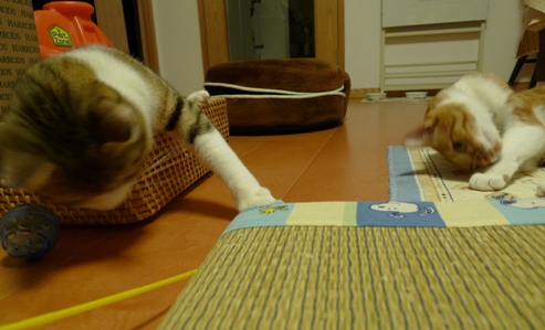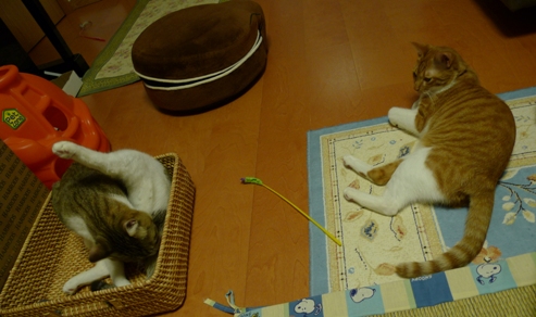 しゃこちゃん、いさきちゃんが気に入った籠、もう一つ買ってこようかどうか考え中