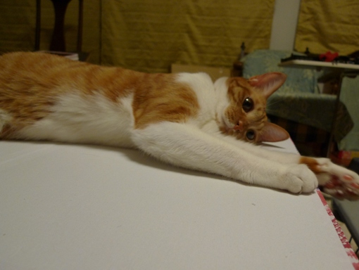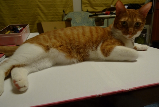 和裁の宿題をしようと厚紙の台を広げると~
