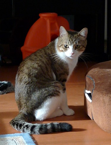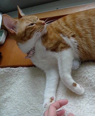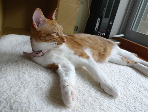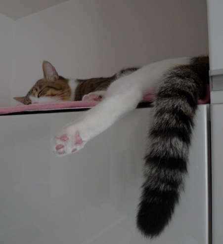 8時にはご飯の催促でメタボなお腹の上を肉球の先で 「トンッ