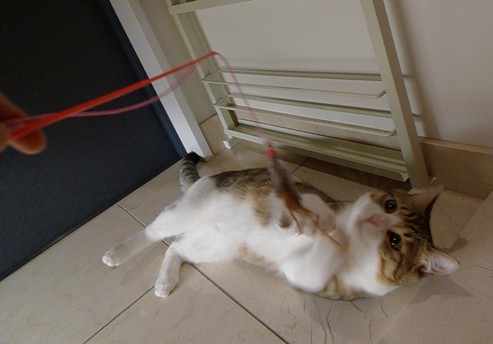 投げてあげたらころーんってお腹出して撫でろっていうー
