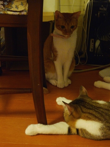 いさきちゃんが溜息をつくようにしゃこちゃんを見ています(笑。