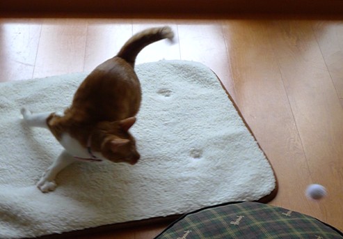 ぶかぶかだったピンクの首輪の上に白い毛が乗っている~いつの間に!