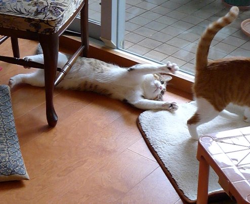 しゃこちゃんは、いつものように手を八に広げてぐてーっ。