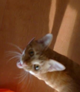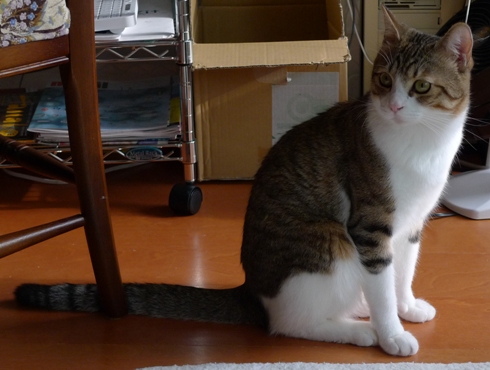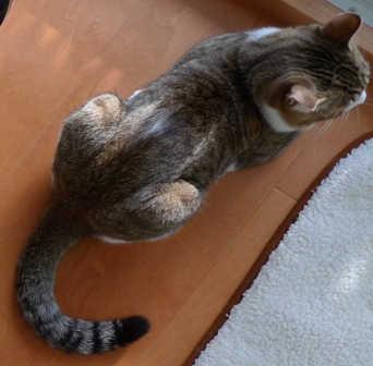 網戸にしたら、外の大きな音でいさきちゃんも起きてきました