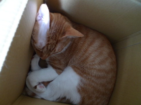 いさきちゃんはというと、そのすぐ左の箱の中でお昼寝中。