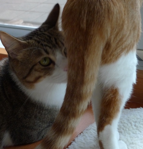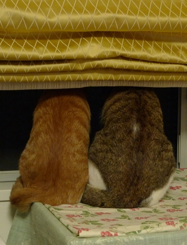 窓を開けたら2匹お揃いで見張り台からパトロール