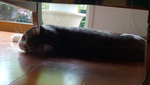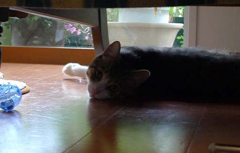 椅子の下は、しゃこちゃんのお気に入りの場所。