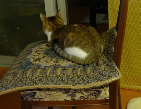 見張り台の上、暖かくなったので涼しそうな素材のものを敷こうかなと