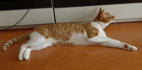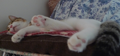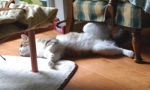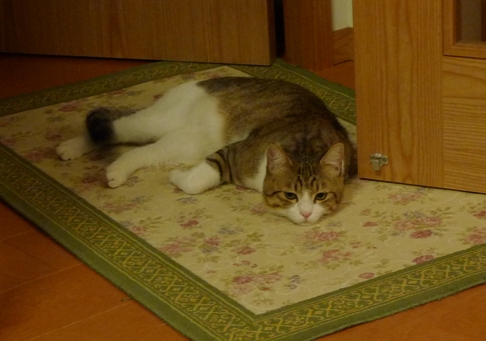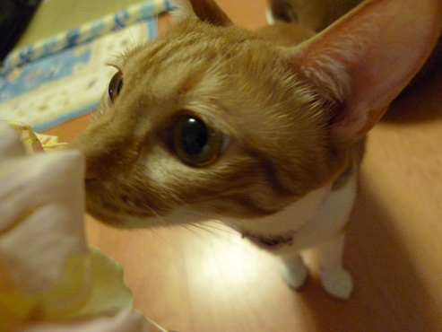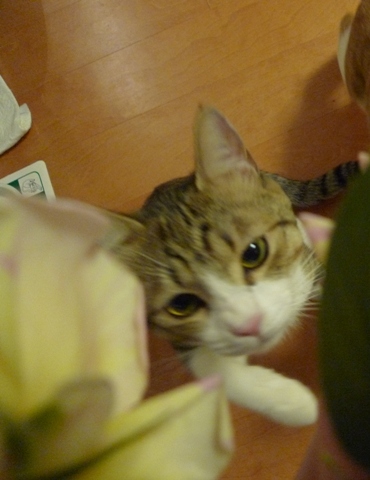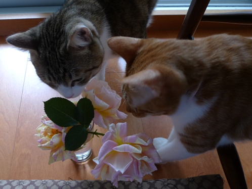 いさきちゃんがポンポン遊びで疲れてクールダウン中のところをパチリ。 バラが終わりそうなので切ったものを部屋に飾ろうと思ったのだけど。。 しゃこちゃんもいさきちゃんも興味深々すぎる~ しゃこちゃんは花を噛みちぎって食べようとし始めたので お花はトイレに飾ることにしました。 でもバラの在りかがトイレだとばれてしまったので~^^; どこに飾ろうかとバラを持って部屋をうろうろ。。 いさきちゃんは女の子らしくお上品にすんすん。 「ボクにちょうだい~*」 しゃこちゃんが完全にロックオン! 仕方なくバラは食器棚の中に入れたのでした。。 「つまんな~い*」
