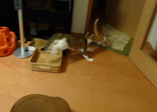 しゃこちゃんといさきちゃんは朝から元気に追いかけっこ