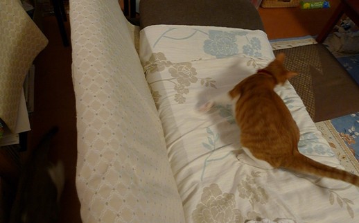 今日は朝の追いかけっこはなかったので、いさきちゃんはポンポンを出してもらって