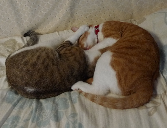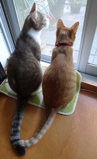 ちょっとだけしっぽが触れ合っていて